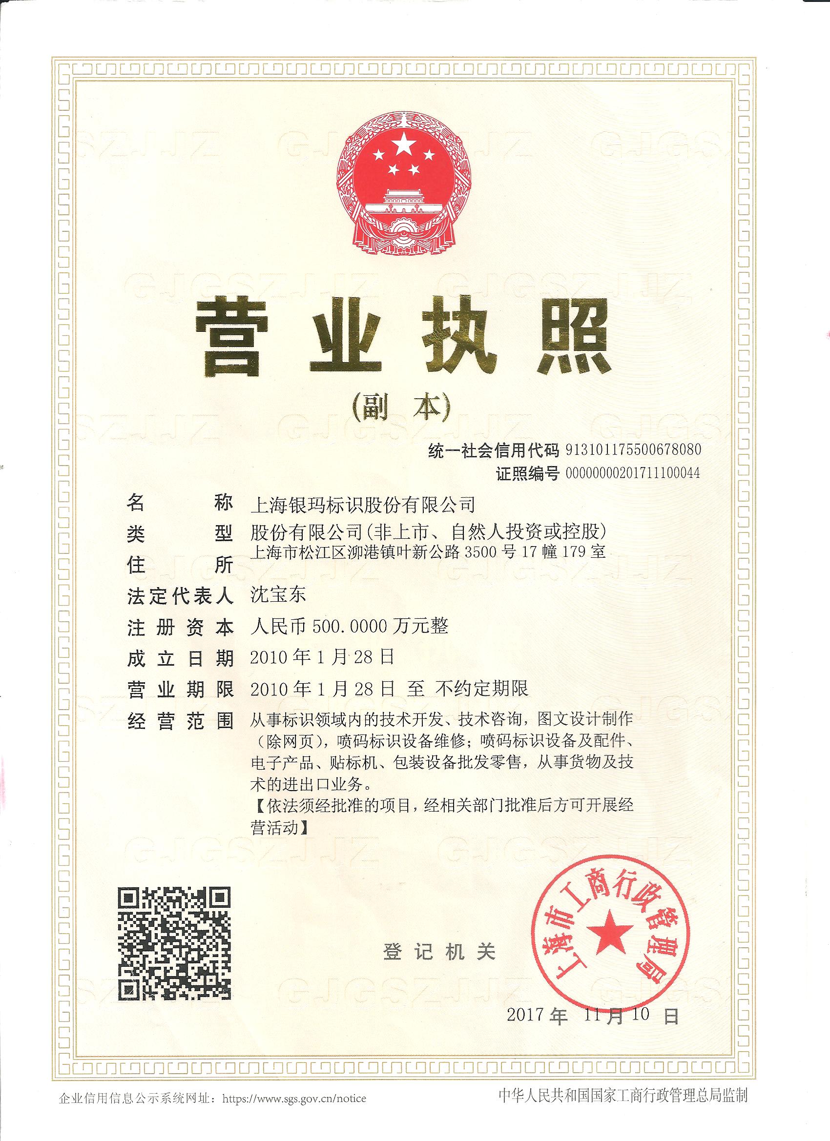上海銀瑪標識股份有限公司(原名:上海銀瑪標識技術有限公司)成立于2010年元月。是專業從事噴碼標識設備、激光智能標識系統及材料表面賦碼技術等研發設計、推廣應用的企業??蔀橛脩籼峁耙晃镆淮a”技術支持與服務。公司2015年通過ISO9001質量管理體系認證,為上海市科技創新型中小企業,并獲市科技創新基金支持。